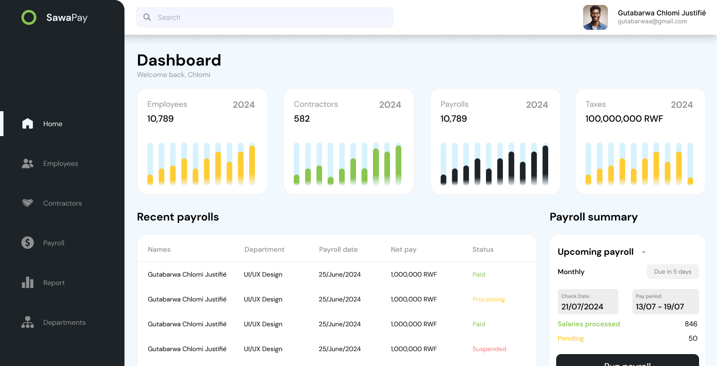 I joined a challenge to design a web application for a company that was creating a software solution to manage Payroll in companies.